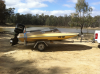 And then... In a river town called Swan Hill, in a boat yard full of Camo boats and hunting gear, at the very back, squeezed in between old and new trailers was this forgotten Gem. A Gold and Yellow Glastron GT150. 1979 my research has lead me to believe.