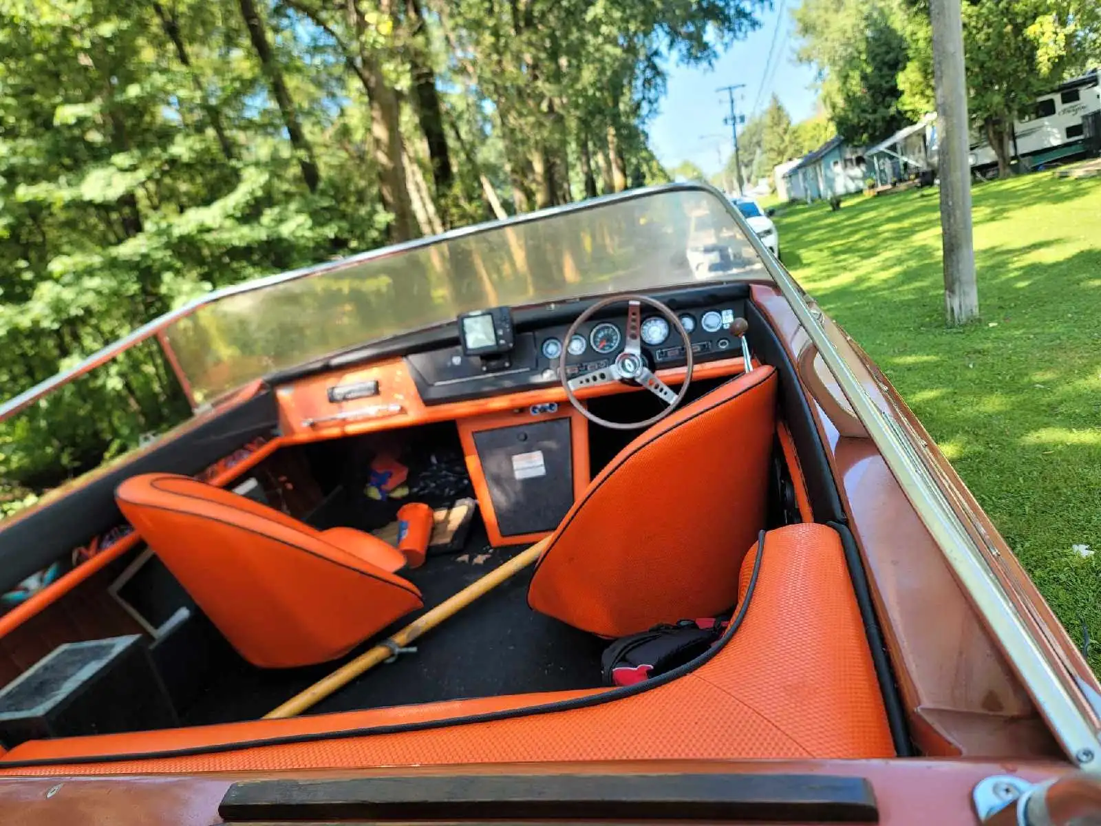 Unbelievable condition Glastron Carlson. James Bond boat. This boat should be in a museum. You will never find a nicer Carlson. All original unrestored Speed boat and ski boat. Paint sparkles like new. Crazy cool red metal flake paint. Interior is crazy nice. Hull is perfect. Looks brand new. All original boat that has had 1 owner its whole life. Garage kept and very very well taken care of. If you see this boat you will buy it. Boat runs and drives perfectly. Has original 120hp mercruiser I/O that runs perfectly and pushes it to 50mph and pulls a skier easily and quickly out of the water. Very fast and sexy boat.