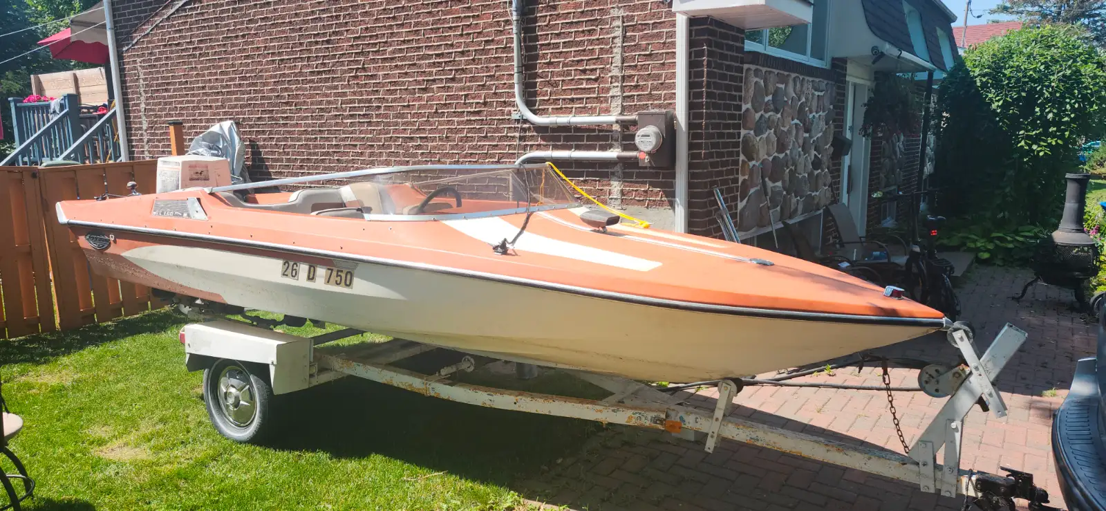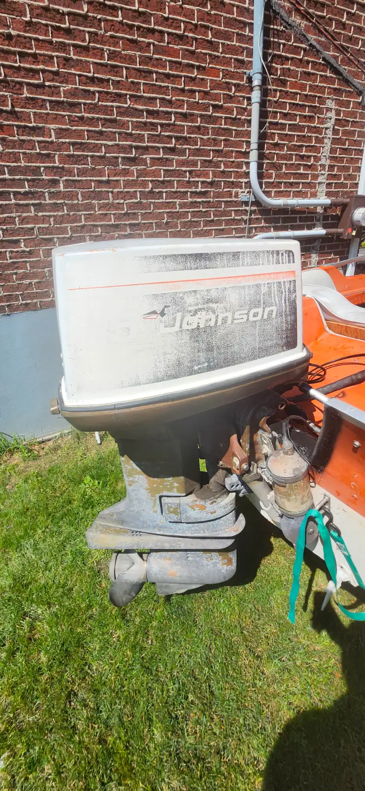 Glastron gt160 1975. Motor in very good condition johnson 115hp. Trim works. Could use a small tuneup but nothing major. Has a brand new battery worth 250$. The trailer is in very good condition lights work. Floor will need to be redone but still ok. Leaks a bit of transom im trying to fix it for now. I have all the papers. Asking 2000$ a bit negociable as just the motor and trailer is worth more.