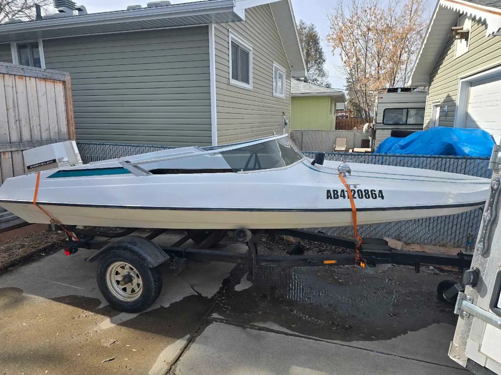 1968 Glastron Jetflite with 1975 Evinrude Hustler 75hp outboard and trailer for sale. This rig is in very nice condition, especially considering that the boat and trailer are 57 years old, and the engine is 50 years old. We are the second owners of both boat/trailer and engine, but boat and engine were not rigged together until this year.