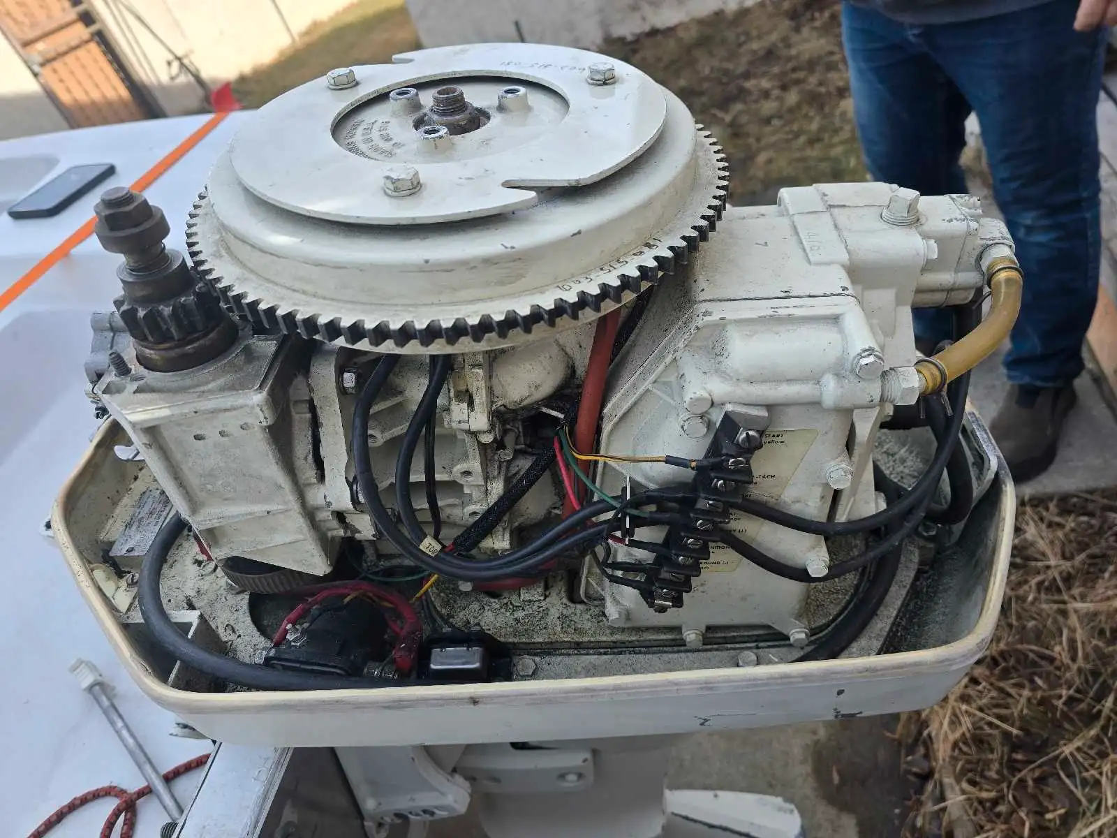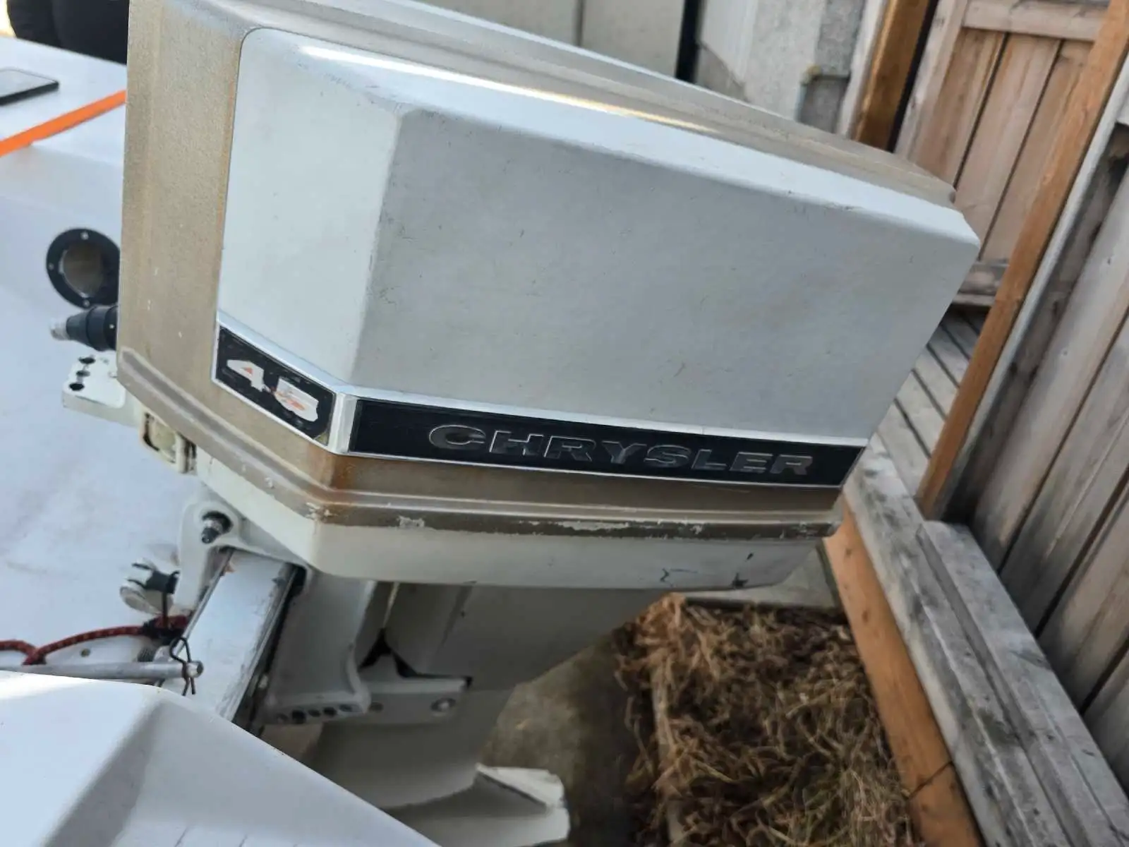 Boat is from Minnesota, engine from Tennessee. Engine has very low hours, estimated less than 200. Engine just serviced with new water pump, new fuel pump, rebuilt carburetors, new gearcase seals and lubricant. Engine has optional dealer-installed accessory power trim and tilt with accessory trim switch on throttle handle (a rare option back then). Has full compliment of new old stock OMC traditional series gauges (speedometer, tachometer, water pressure and water temperature gauges, and power trim gauge). All gauges work as new.